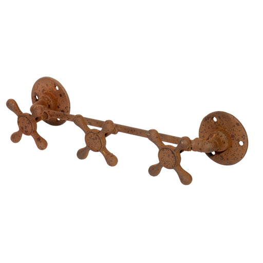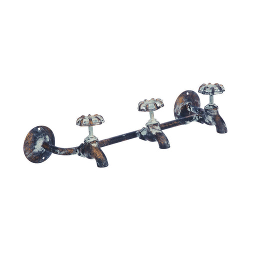 Charming addition to your coat room or lobby, this iron wall hanger features three distressed water spigots. Vintage inspired wall hanger with c...