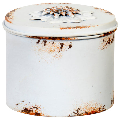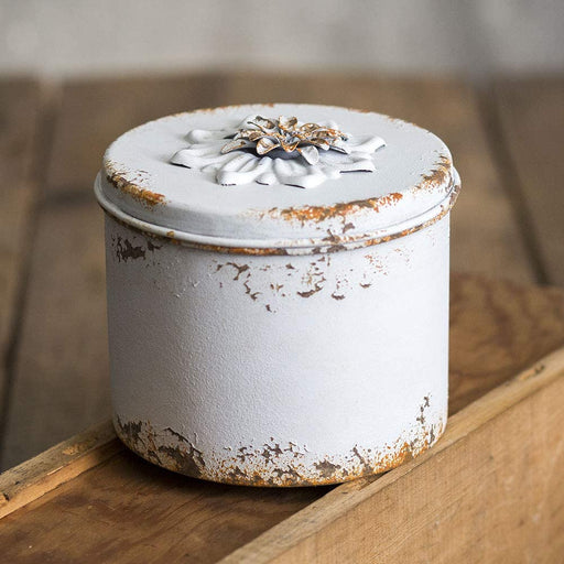 This sweet container is made of metal and measures 5" dia. x 4½"H, and features a decorative flower on the lid. This elegant container looks beauti...