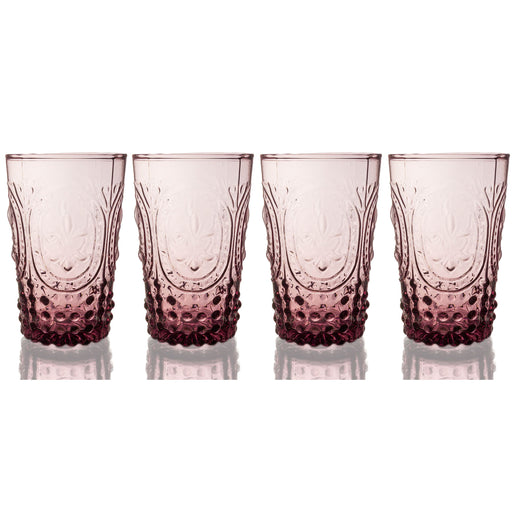 Elegantly shaped clear glasses are a pleasure to roll in your hand. Set contains 4 glasses. Magnificent detailing and elegant design of Fleur-de...
