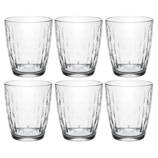 A clean silhouette, an elegant slightly tapered shape, and diamond cut design make these tumbler glasses the optimal choice for entertaining guests...