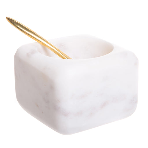 Wonderful white marble salt bowl with little brass spoon. Perfect pinch bowl to keep ingredient close at hand for food prep Will hold your favo...