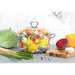 INDUCTION COOKING: The induction bottom of the pot allows it to disperse heat evenly while cooking and stays warm longer. GREAT KITCHEN TOOL: The round pot comes complete with a lid made of the same durable material as the pot and handles on both ends of the pot to easily transport from the stovetop to the dinner table, and from the table to the sink. KITCHEN DECOR: Made of a durable enameled metal with a beautiful vintage design and gold trim that will brighten any kitchen. COOKING & SERVING: A stockpot is a great choice of kitchenware to cook and serve food from the same pot. The 6.5 quart size makes it ideal for many recipes including small soups, stews, meatballs with sauce, rice, potatoes, beans and lots of other delicious dinners. DIMENSIONS: The pot measures 10.5" with handles by 8" wide and 7.5" high including the lid. Dishwasher Safe.