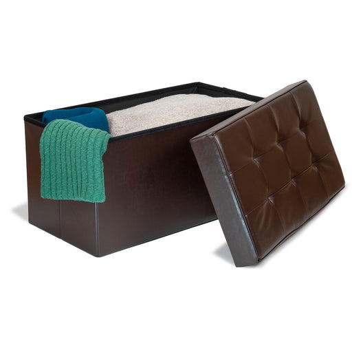 Made with espresso-tone faux leather, this ottoman gives you endless options with its smooth texture, rich color, and sturdy construction. Use for ...