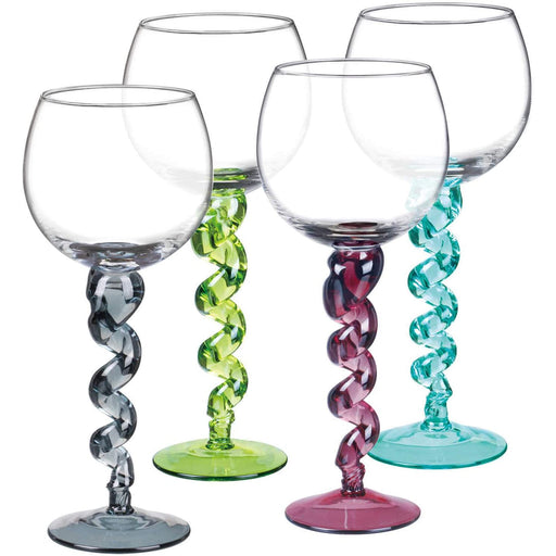 Set of Goblet Wine Glasses brings a pop of festive color to any gathering. Beautifully handcrafted with color-infused twisted stems, these unique a...