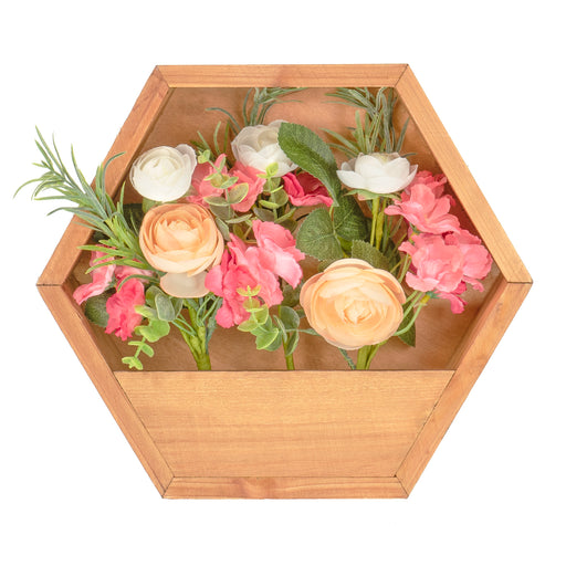 Add a little country-style décor to your home with this decorative wooden shelf. The hexagonal planter is great for any room in the house. The faux...