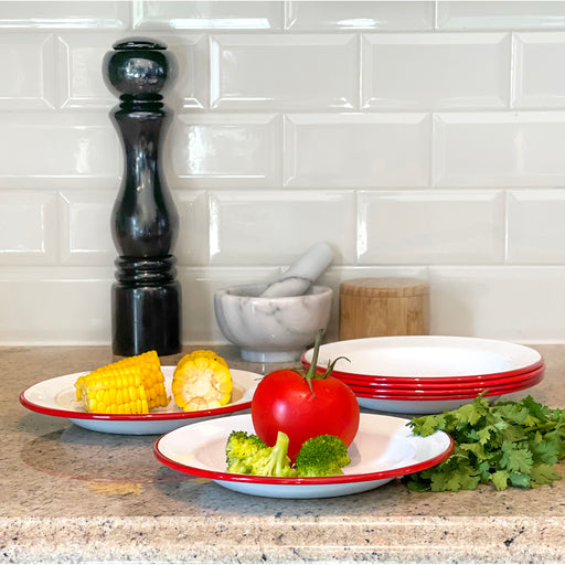 This simple enamelware set will come in handy whenever you are serving guests or family. Made of durable metal and finished with a smooth white ena...