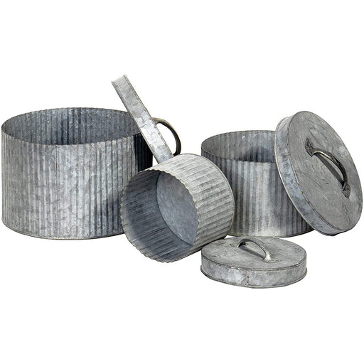 These rustic style metal canisters feature galvanized metal for long term durability. Put away your things with the convenient metal lids to keep t...