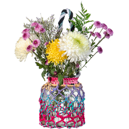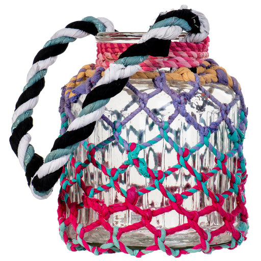 Unique and colorful, this unconventional large jar is covered in a bright braided jute fabric in a beachy net pattern. This is a refreshing additio...