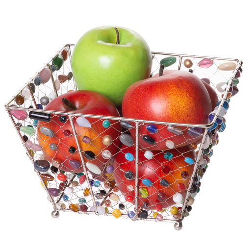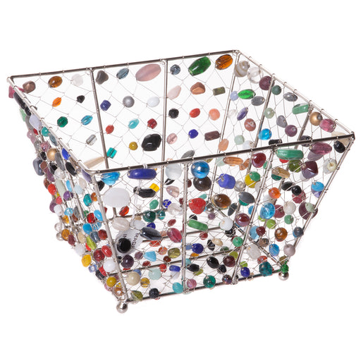 Features beautiful harmoniously blended colored beads and pebbled in a mesh wire design on an aluminum frame. Use as a catch-all tray for your keys...