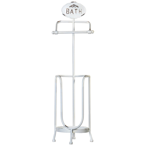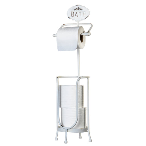 The bath tissue stand is made of metal and can accommodate 3 double-rolls of toilet paper, 1 on the ready to use spindle and 2 conveniently stacked...