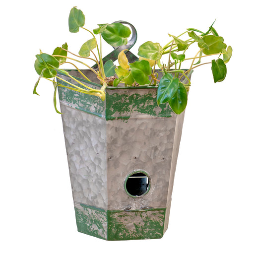 Charmingly rustic, this metal bird house has room at the top to serve as a planter, bringing a beautiful organic touch to your front door or porch....
