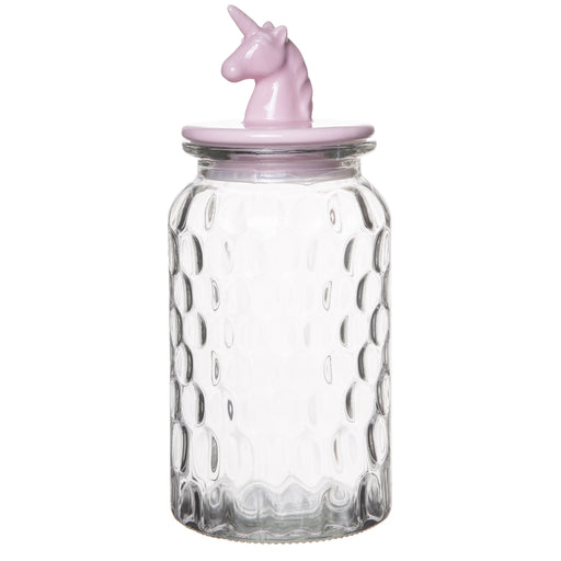 Red Co. Large Food Storage Rain Drop Pattern Glass Jar Canister with Pink Unicorn Shaped Ceramic Airtight Lid, 43.25 Ounces