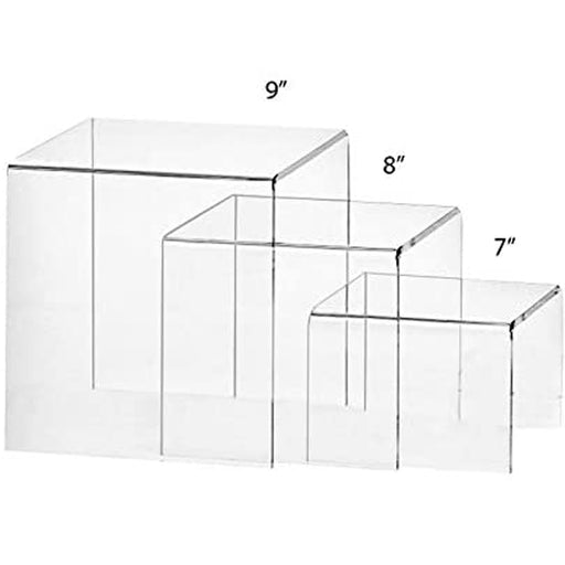 Set of 3 Premium Quality Clear Acrylic Display Stand Risers, 0.25 Inches Thick - 7, 8, 9 Inches