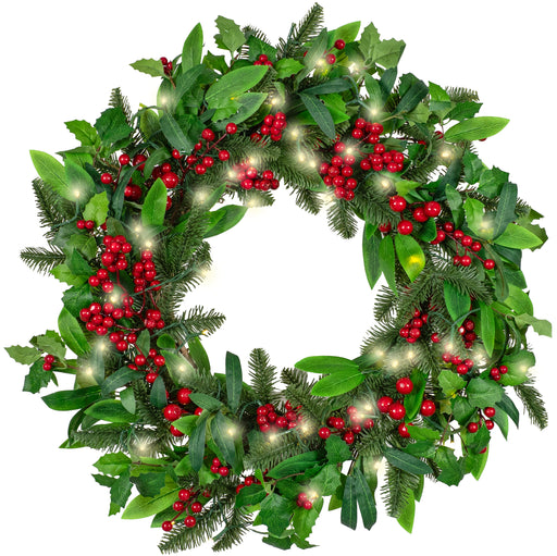 TRADITIONAL LOOKΒ β Natural, thick, and stable grapevine base wreath embellished with charming sprays of rich red berries and juniper branches. L...