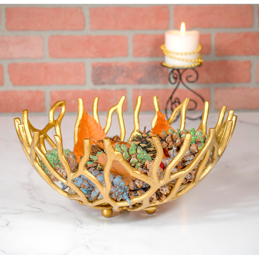 Captivates with its asymmetrical shape and pointed edges in sparkling gold finish. Makes a bold accent when placed atop of a coffee table, sideboar...