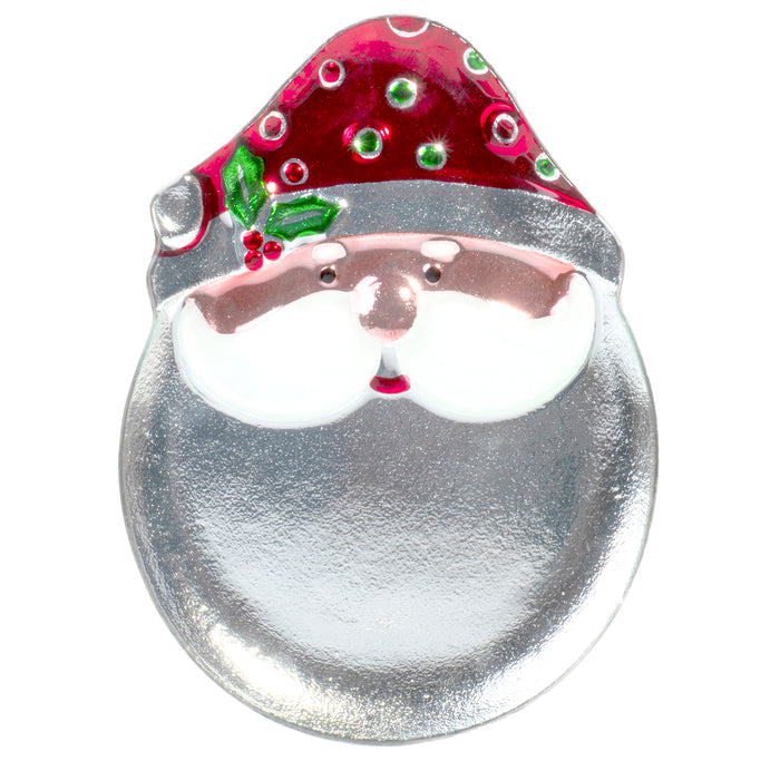 Charming holiday platter to grace your table and celebrate the most wonderful time of the year with style while serving Christmas cookies, candy, crackers, or cheese, and so much more. A perfect gift for the winter seasons for family and friends, or for collector/s to proudly display year-round. Charm, cheer, and a vintage look make this platter an instant classic filled with warm wishes. Made of high quality durable glass and hand painted with lead-free non-toxic paints and finishes — features a colorful head design and in the shape of Ole Saint Nick. Measures approximately 11¾" x 7¾" — Does not contain substances harmful to health — Wash before use.