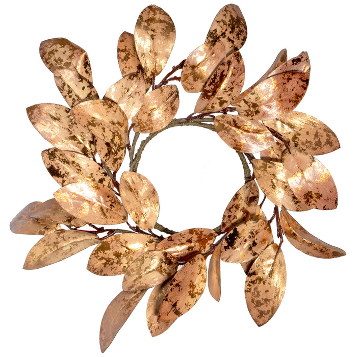 Red Co. 14 Inch Gilded Magnolia Wreath in Rose Gold for Indoor Outdoor Front Door Walls Windows and Party Decoration