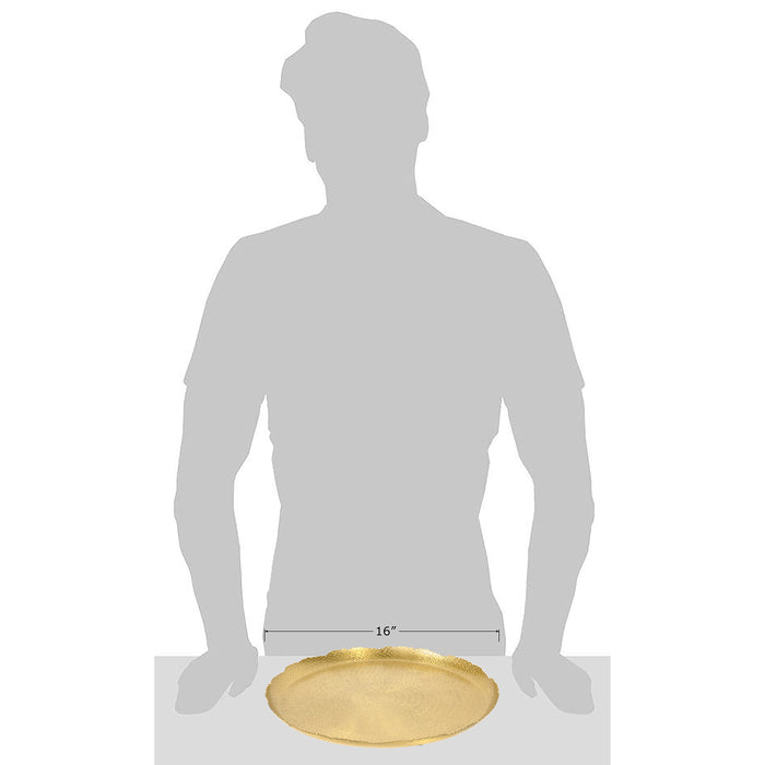Red Co. 16 Inch Antique Aluminum Round Gold Decorative Tray; Platter Serving Dish; Dessert Cupcake Display