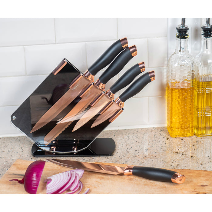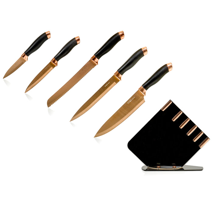 Red Co. 6-Piece Stainless Steel Kitchen Knife Set with Acrylic Base Stand, Rose Gold/Black