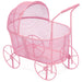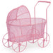 Enhance your baby shower decor with this visually compelling meshed wire baby carriage. Ideal for DIY crafts, it can be embellished with flowers, plush toys, balloons, and more. The cradle shape is perfect for storing candy, small flower arrangements, or supplies. Painted in a charming pink hue, this decorative stroller carriage basket adds a delightful touch to your celebration.