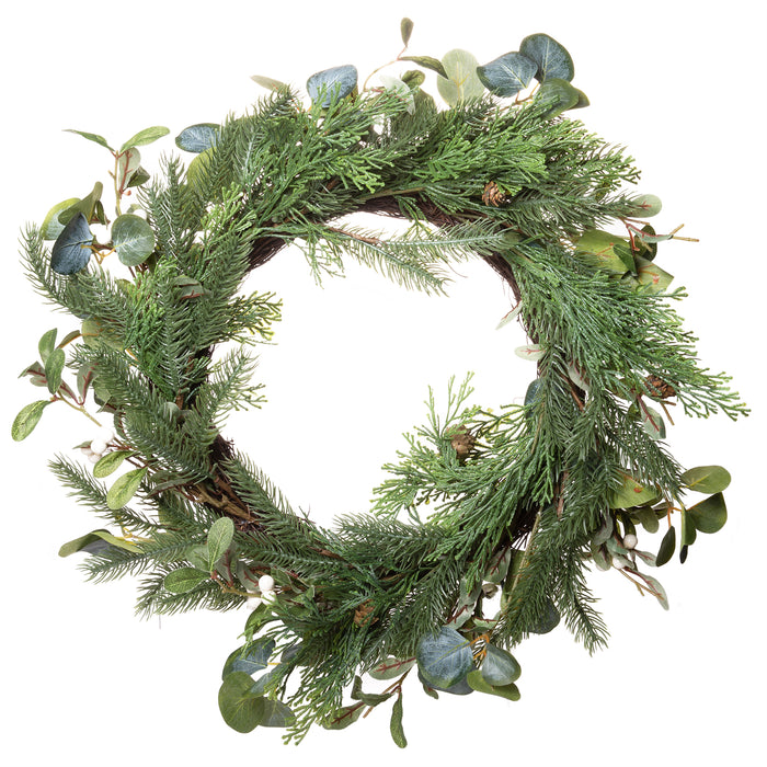 - With vibrant sprigs of pine and soft white berry accents, this wreath is a sure way to bring an effortless natural feel into any home.
