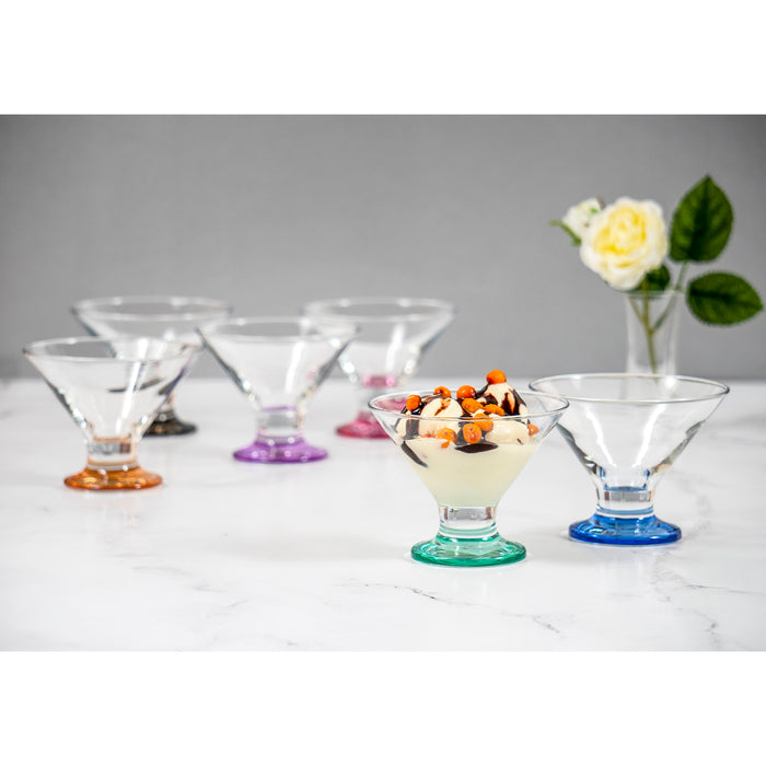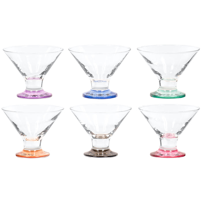 Red Co. Clear Multi Colored Base Cosmopolitan Dessert Glass for Martinis, Cocktail, Spirit Drinks, Desserts, Snacks, 4 Ounce - Set of 6