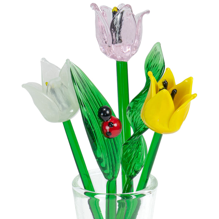 Handcrafted from thin and lightweight yet sturdy borosilicate glass. The flowers are removable from the vase. Comes with a gift box.