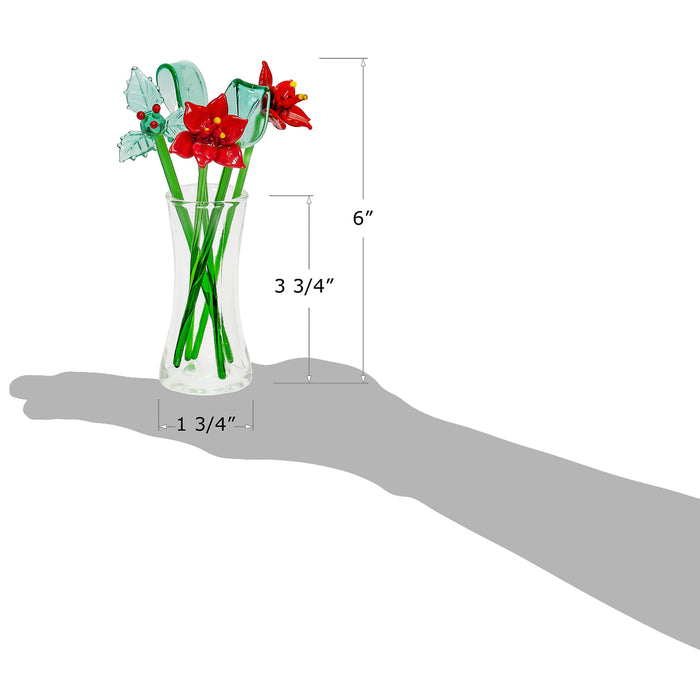 - Dimensions: Vase - 1.5” Dia x 4” H; Flowers – 6” H