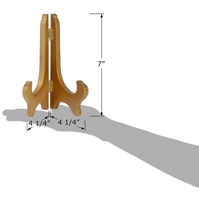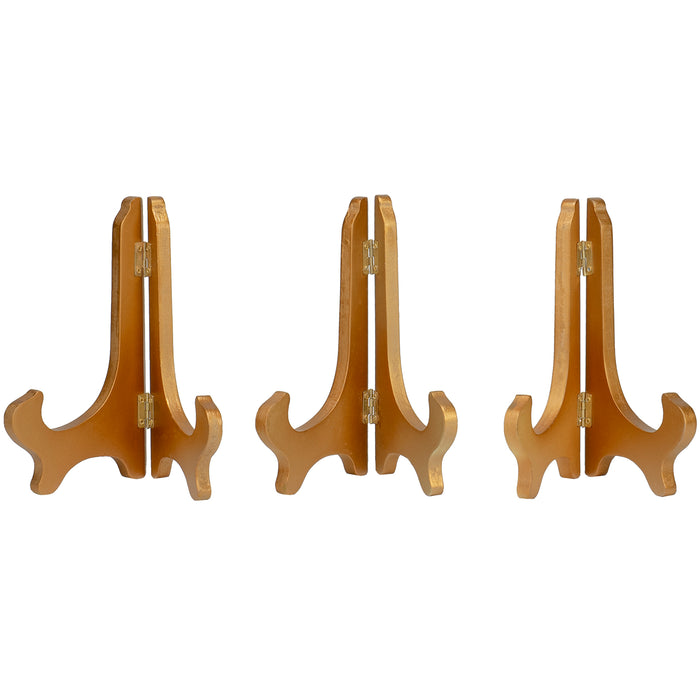 An attractive and functional tabletop piece for your apartment, that would add a delightful accent. Holds collectible plates, trays, saucers, tiles, collector books, awards, certificates, plaques, photo picture frames and other objects. Made of sturdy natural wood in shiny gold finish; Folds flat when not in use for easy storage. Classy, Elegant, Sturdy and Stable. Solid construction, durable with a smooth finish.