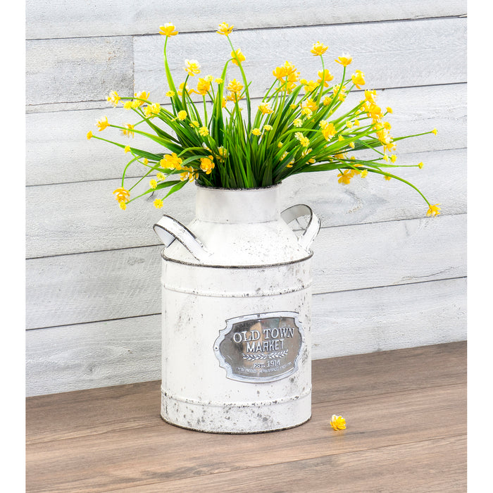 Red Co. Old Town Market Galvanized Metal White Milk Can Flower Vase Plant Holder Décor for Home and Garden Organizer