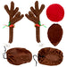 - Full outfit includes 2 window antlers with jingle bells, 2 ears, plus a jolly red Rudolph nose and fluffy tail