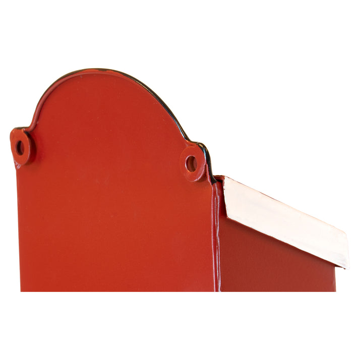 - Inspired by Santa’s traditional red costume with white detailing and embossed black belt, this small letterbox is made of durable yet lightweight metal.