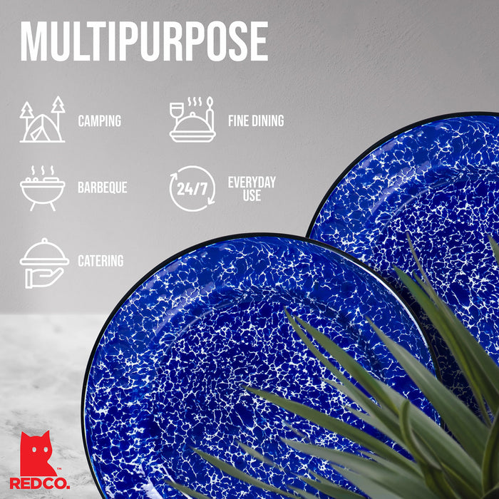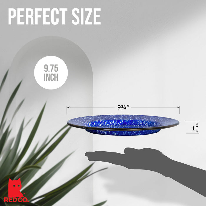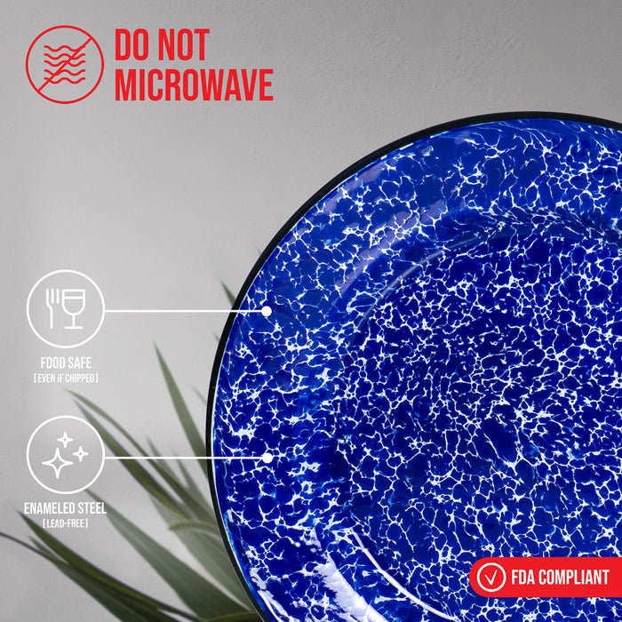 Red Co. Set of 4 Enamelware Metal Classic 10" Round Dinner Plate, Navy Blue Marble/Black Rim - Splatter Design