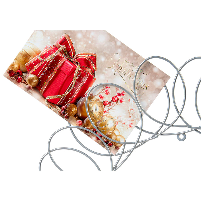 Red Co. Silver Metal Wreath - Wall Mount Christmas Card Holder - 17" Dia