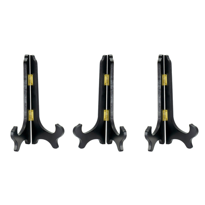 An attractive and functional tabletop piece for your apartment, that would add a delightful accent. Holds collectible plates, trays, saucers, tiles, collector books, awards, certificates, plaques, photo picture frames and other objects. Made of sturdy natural wood - Folds flat when not in use for easy storage. Classy, Elegant, Sturdy and Stable. Solid construction, durable with a smooth finish. Set of 3